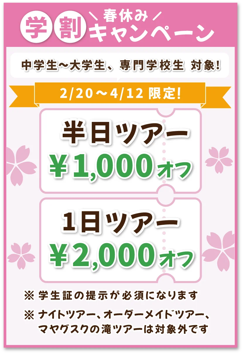 ・オーダーメイドも得意なので、貸切希望やどのツアーがおすすめか迷ったら電話でヒアリングします!